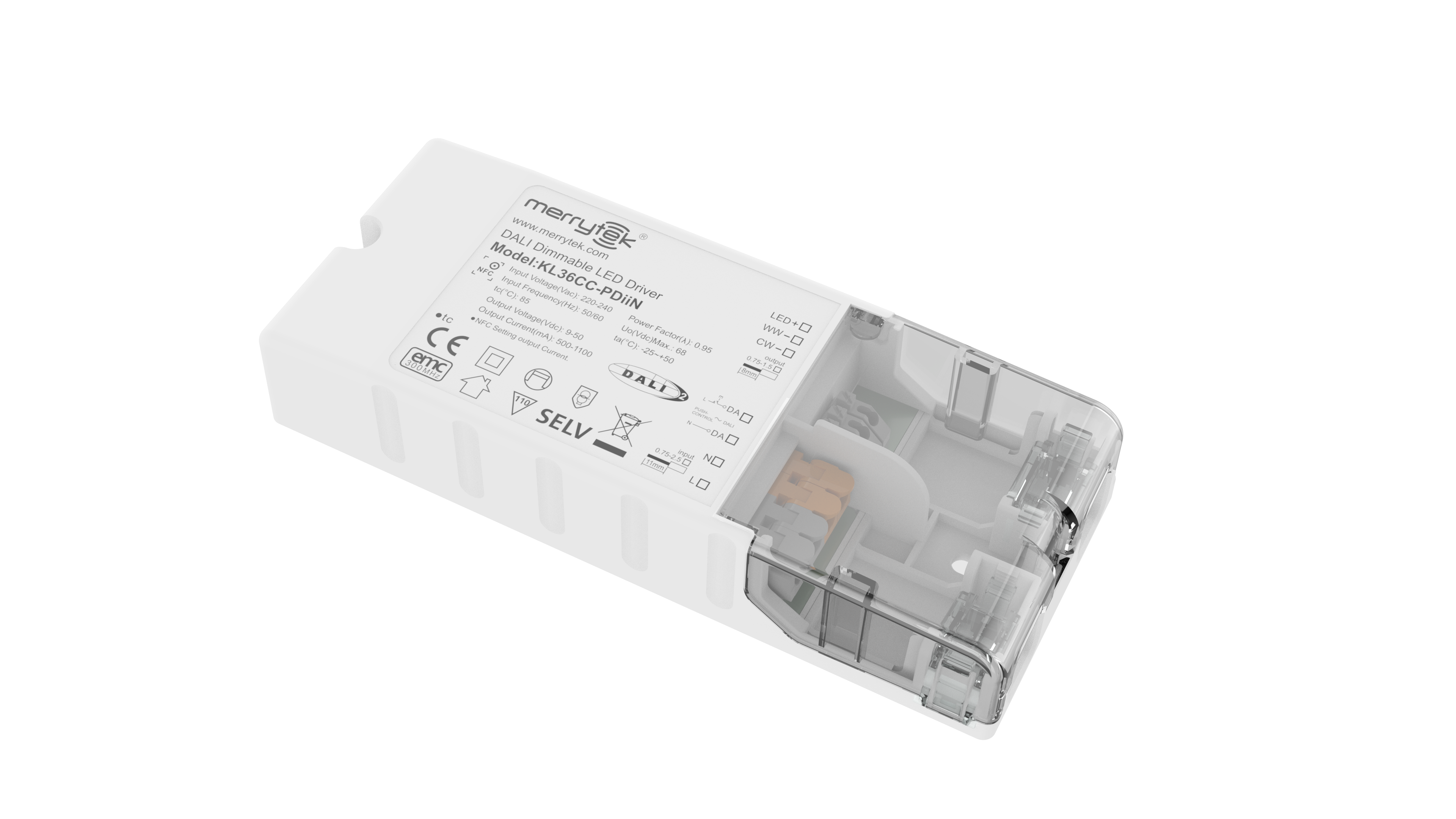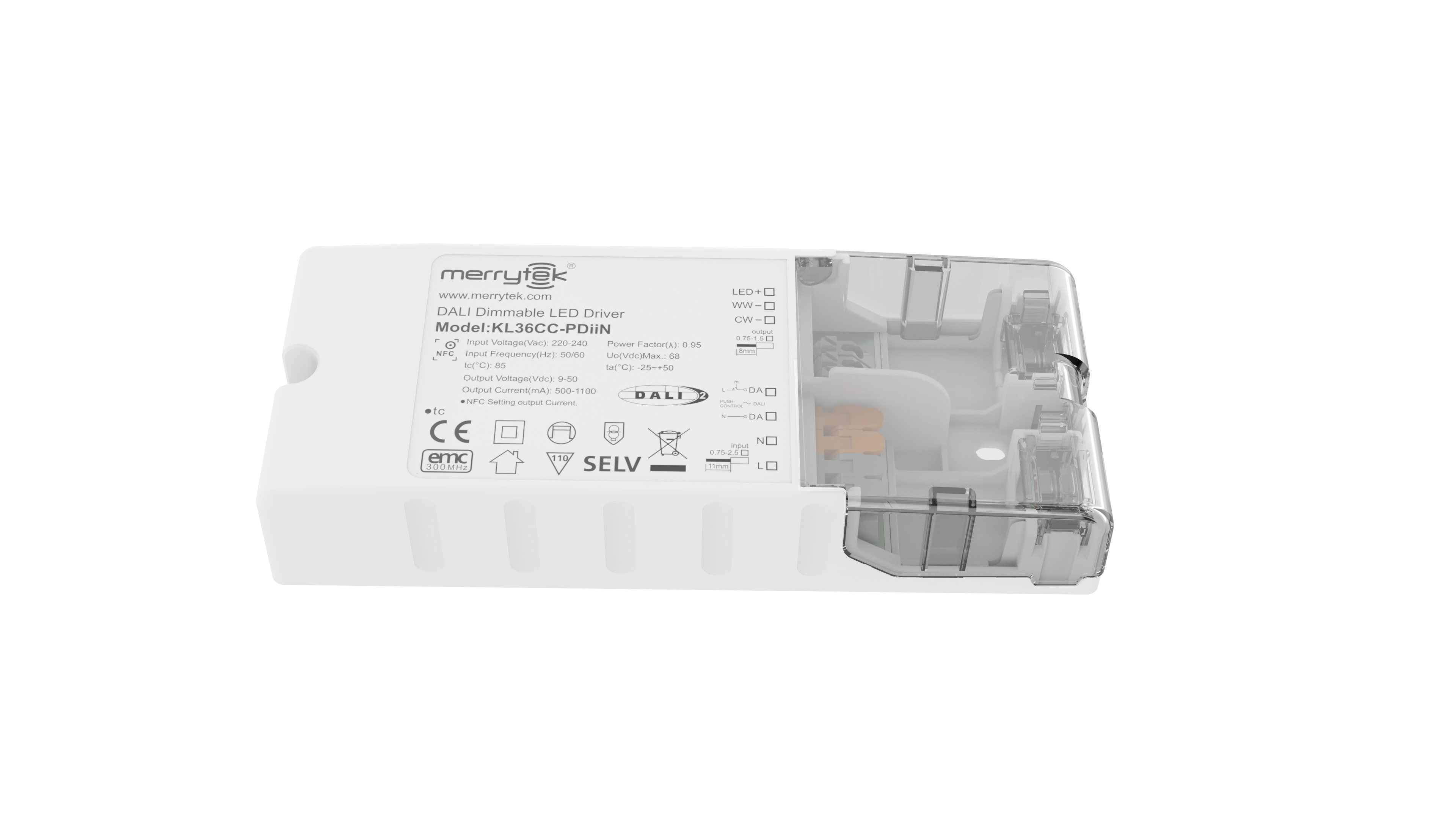 36W एनएफसी प्रोग्राम करने योग्य DALI DT8 एलईडी ड्राइवर निरंतर धारा 500ma से 1100ma आउटपुट